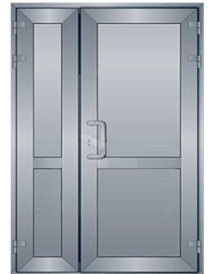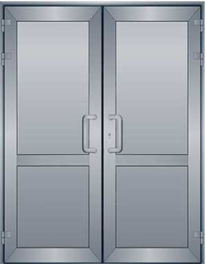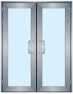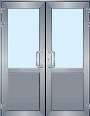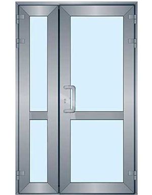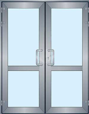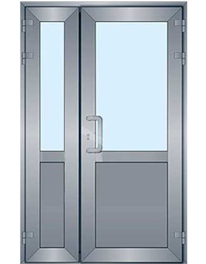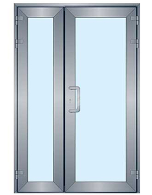Алюминиевые входные двухстворчатые остекленные двери с импостом